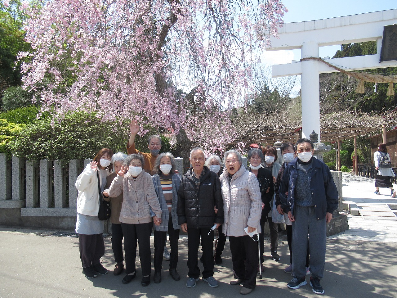 4月はお花見行事で岩沼・金蛇水神社にお出掛けし、大変喜ばれてました♪昼食はお寿司・ミニ蕎麦のメニューで美味しく召し上がっております。