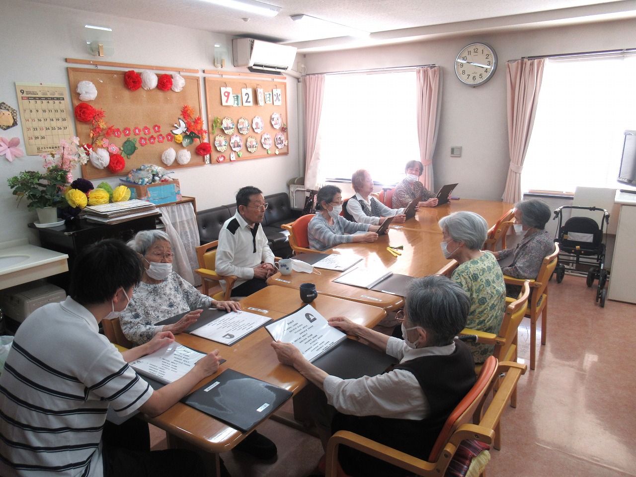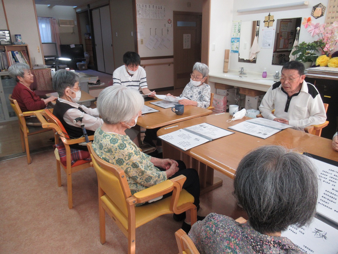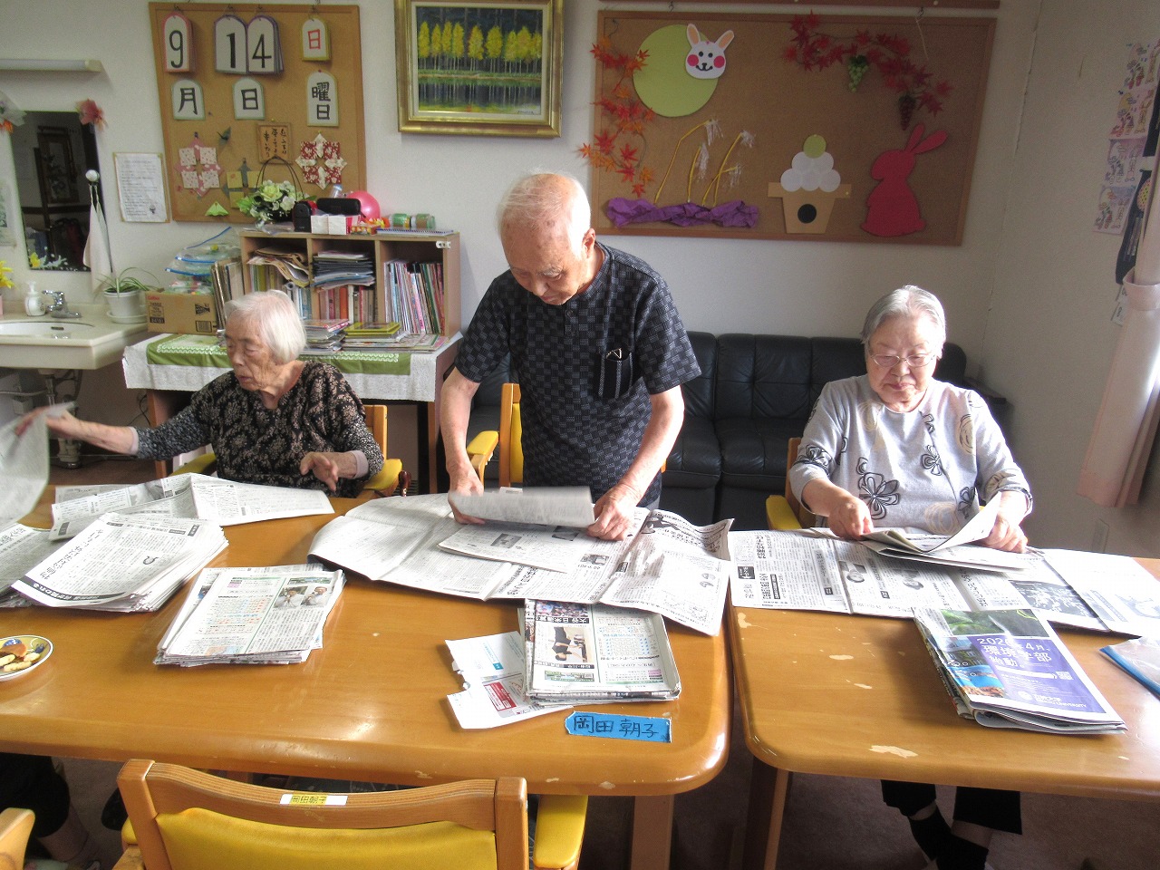 普段の活動としては、新聞紙たたみなどのお手伝いをして頂いたり、歌などのレク活動をして楽しんで過ごされております☆
