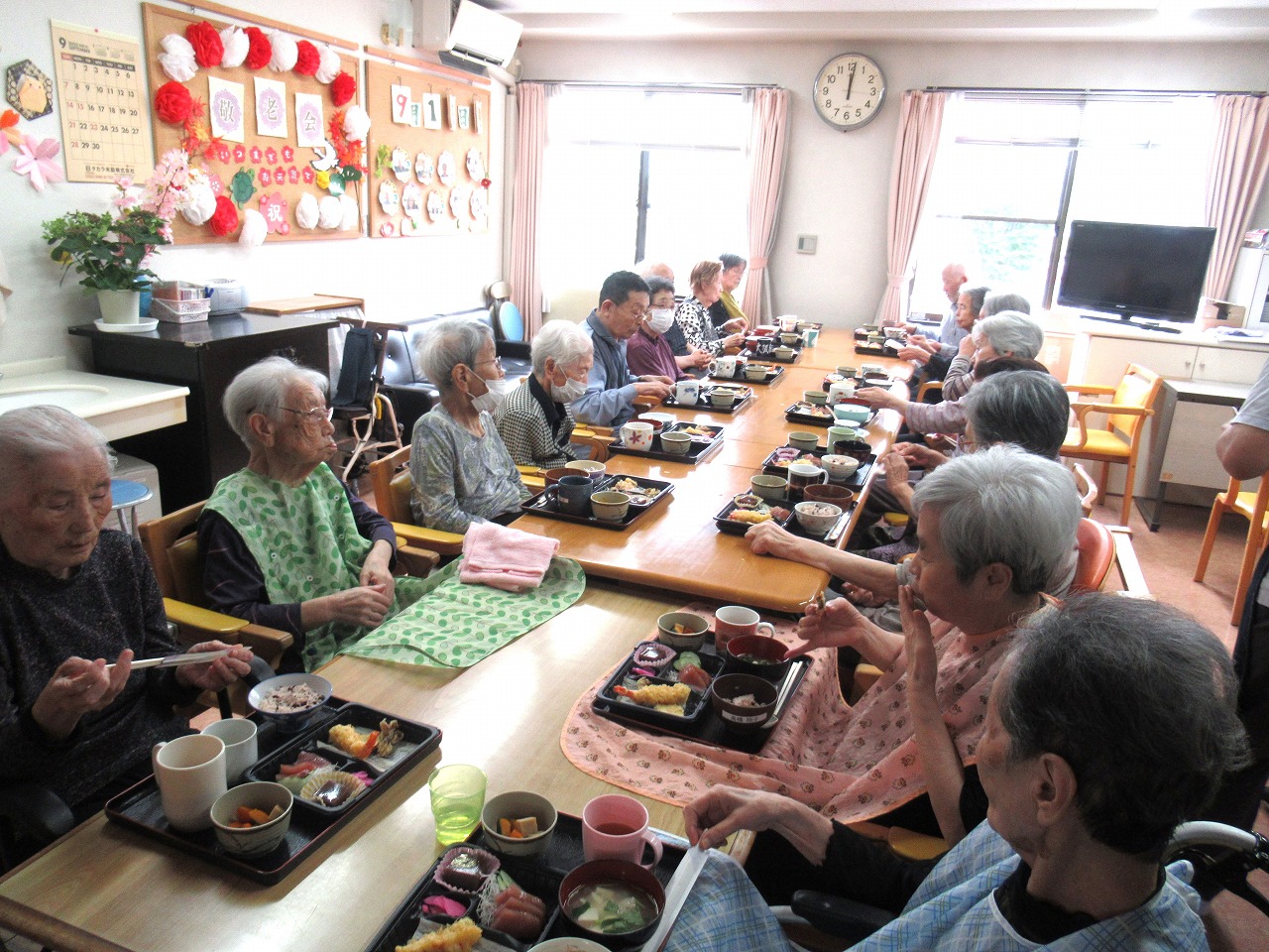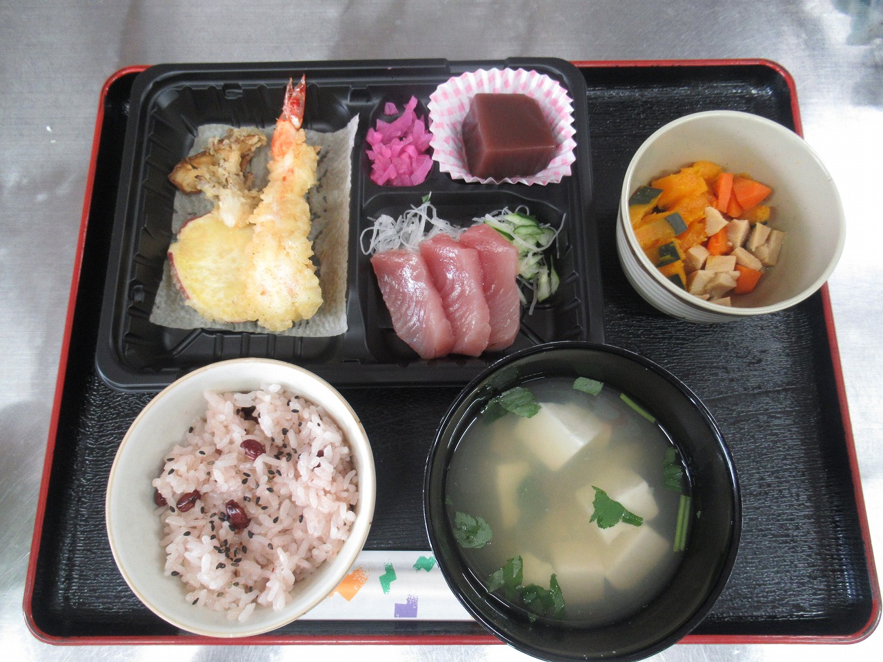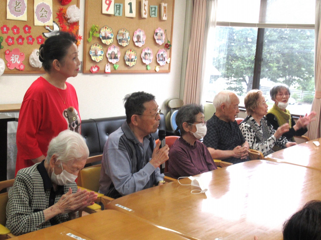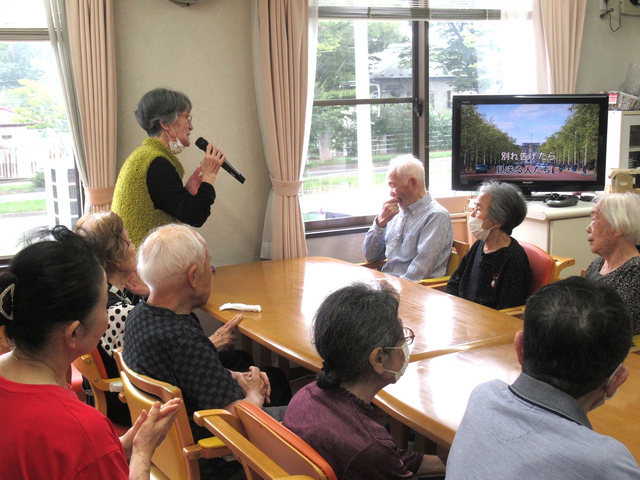 9月は敬老会を行い、都道府県の名産ゲームをしたり、皆様でカラオケをして楽しみました♪昼食には豪華なお刺身、天ぷらの手作り弁当を美味しく召し上がっております。