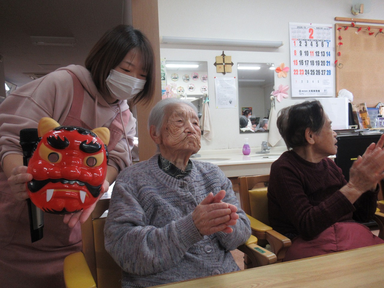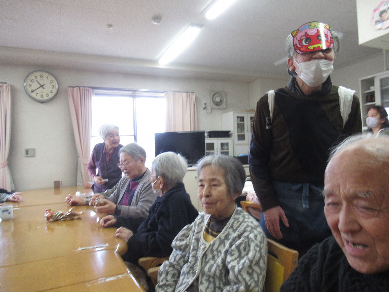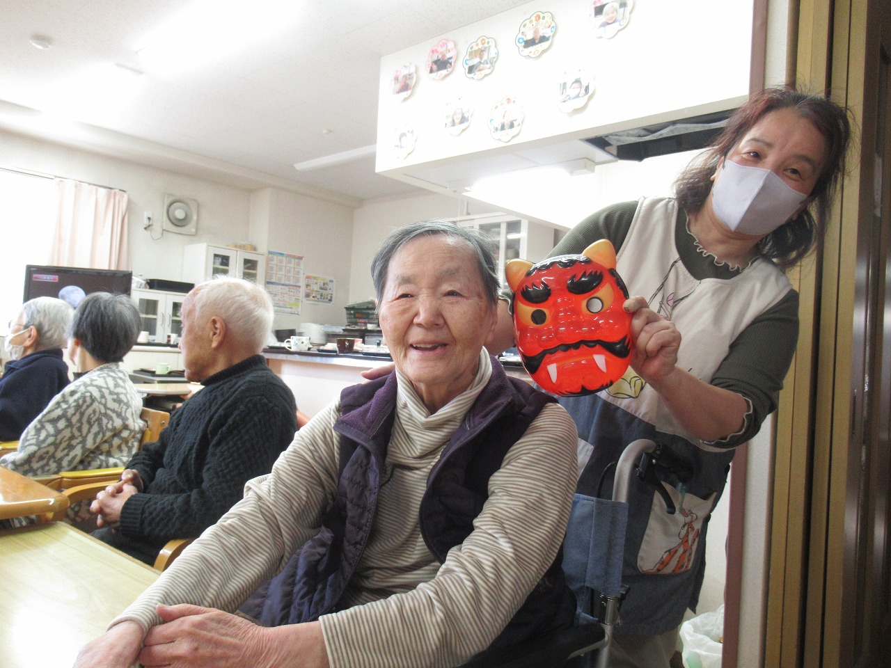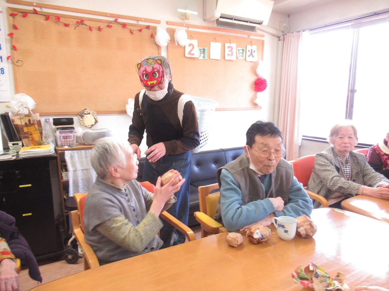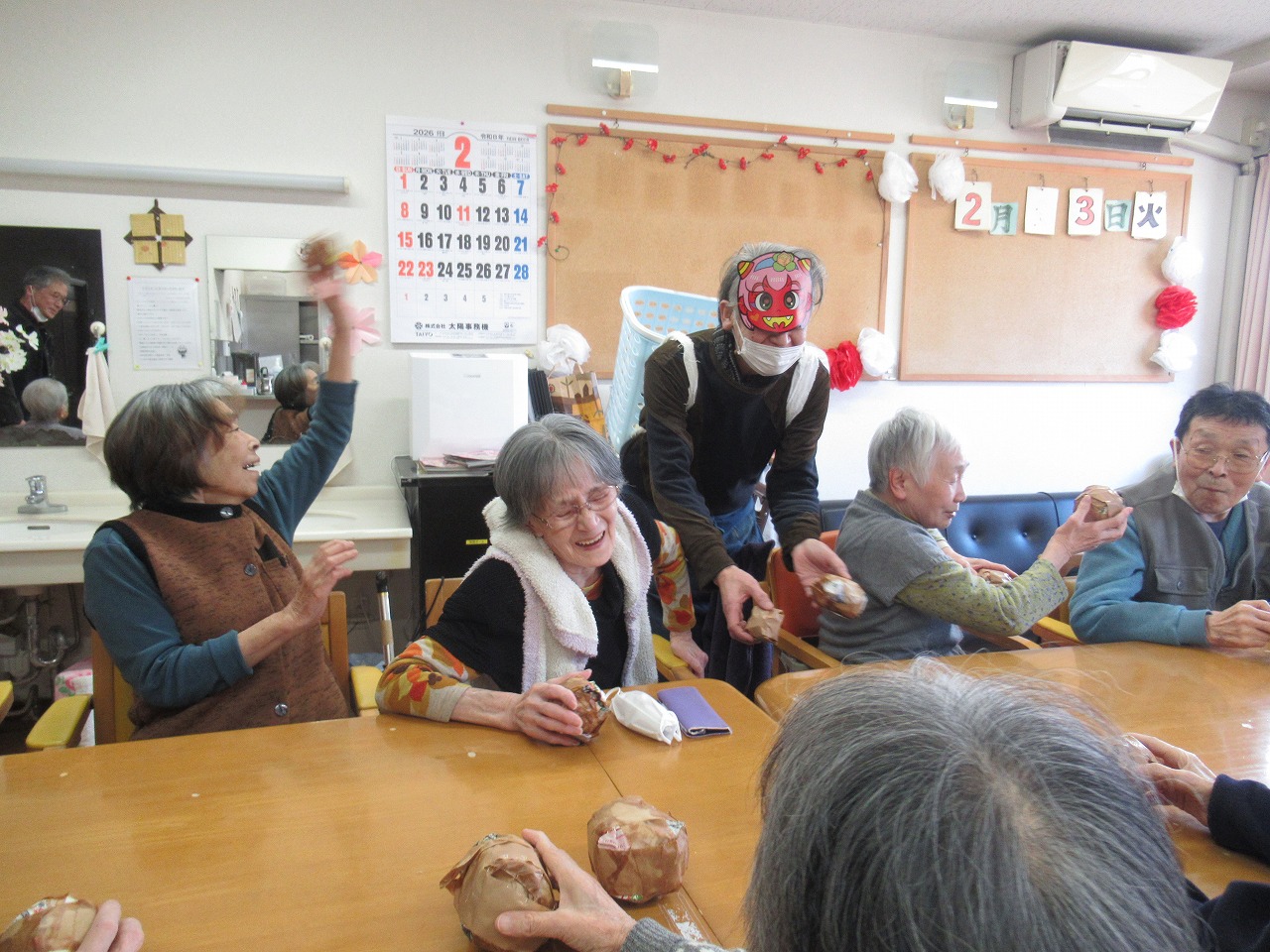 2月は節分の行事を行い、豆まきを模した玉入れゲームをしたり、
